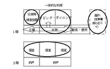 町家等の特徴である通り庭を、床上げし段差のない台所や水回りのスペースとすることが考えられる。また、通り庭上部に床を設置し、居室や納戸として活用することも考えられる。ただし、この場合、通り庭の特性は犠牲になる。町家等の特性と住まい方をよく検討して改修手法を決めることが重要である。