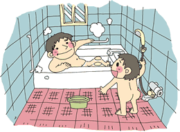 浴室では、すべって転んだり、おぼれたりする危険があります。お風呂の入り方に合わせて手すりをつけたり、すべりにくい床になっているとよいでしょう。