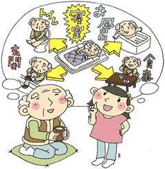 「寝るへや」や「食事するへや」、「トイレ」、「浴室」などは、近くて行き来がしやすい位置にあると、体が不自由でも家のなかの移動がより楽になります。